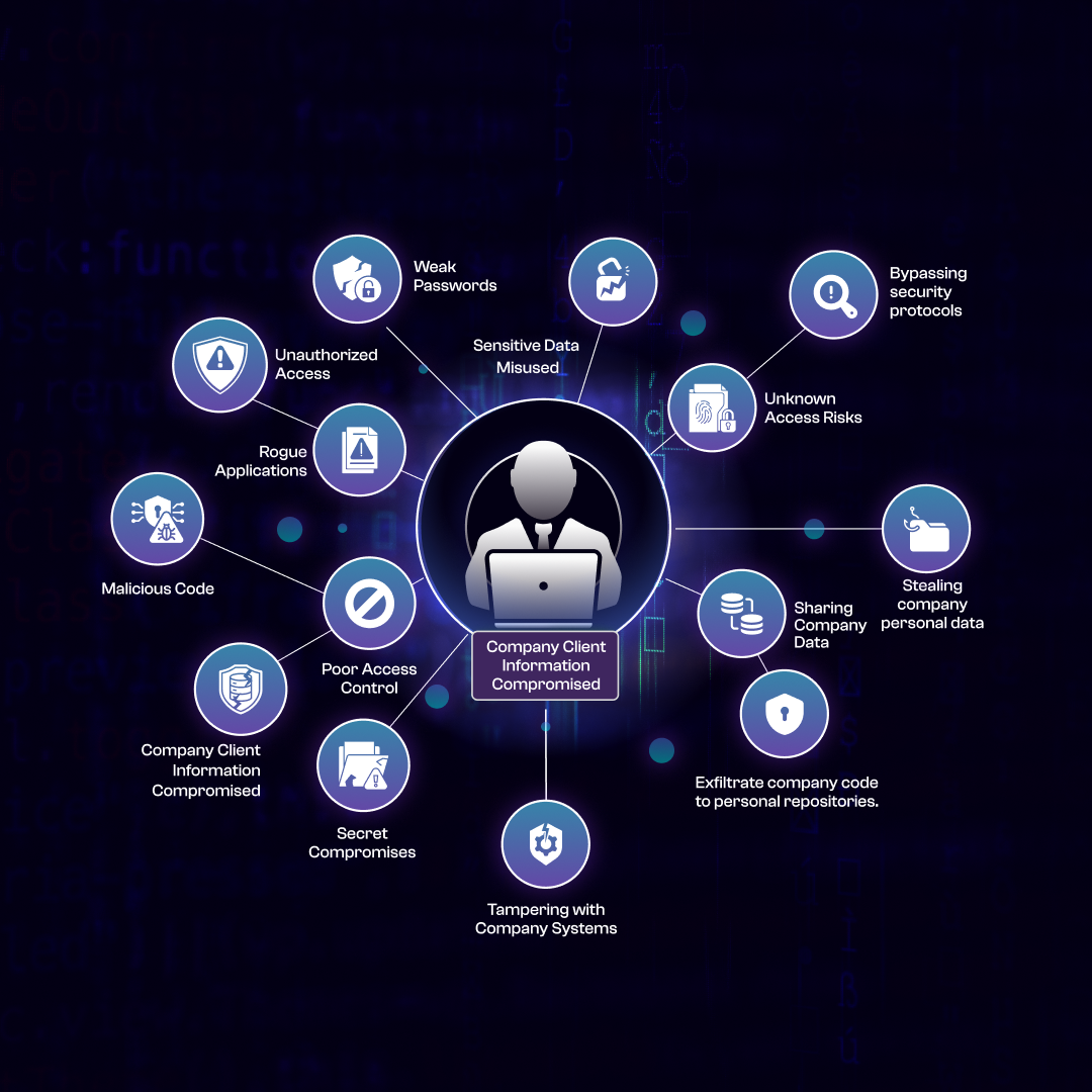 - Insiders exfiltrate company code to personal repositories.